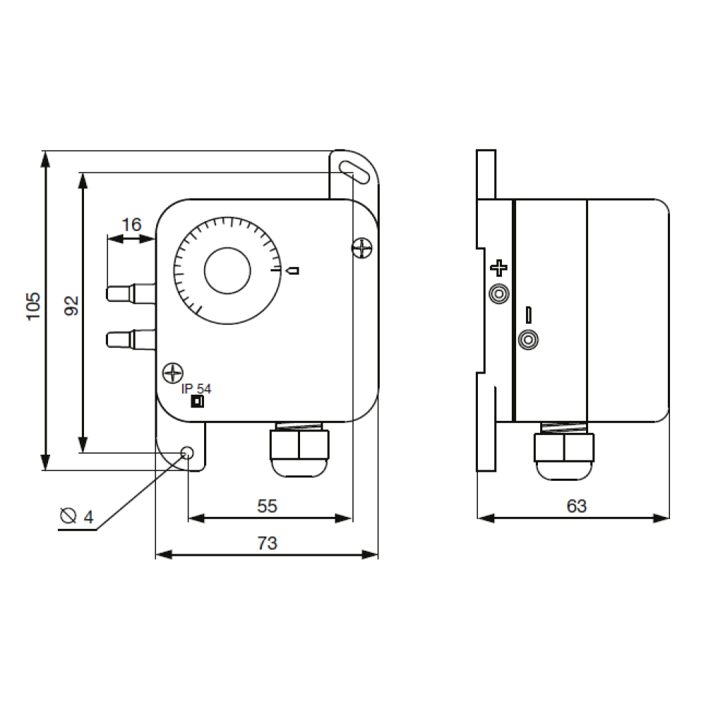 Der Differenzdrucksensor eignet sich z.B. zur Anzeige von verstopften Luftfiltern, zur Überwachung der Unversehrtheit von Keilriemen, etc. Der Differenzdruck wird im Inneren des Sensors eingestellt, nachdem die Abdeckung entfernt wurde.