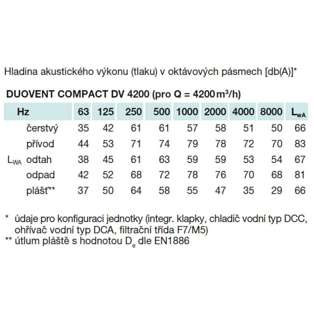 Die in den Tabellen angegebenen Geräuschwerte stellen die Schallleistungspegel an den einzelnen Kehlen des Gerätes mit der Bewertungskorrektur A, dem Schallleistungspegel des gesamten Gerätegehäuses dar. Die akustischen Parameter liegen innerhalb von ±3 dB.