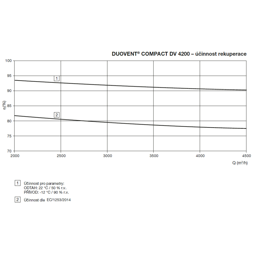 Ein Ventilator mit rückwärts gekrümmten Schaufeln ist auf der Zu- und Abluftseite des Geräts montiert. Das Laufrad besteht aus Verbundwerkstoff und ist statisch und dynamisch ausgewuchtet.
