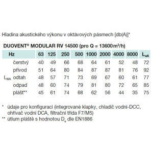 Die in den Tabellen angegebenen Geräuschwerte stellen die Schallleistungspegel an den einzelnen Kehlen des Gerätes mit Bewertungsfilterkorrektur A, den Schallleistungspegel der gesamten Gerätehülle dar. Die akustischen Parameter liegen innerhalb von ±3 dB.