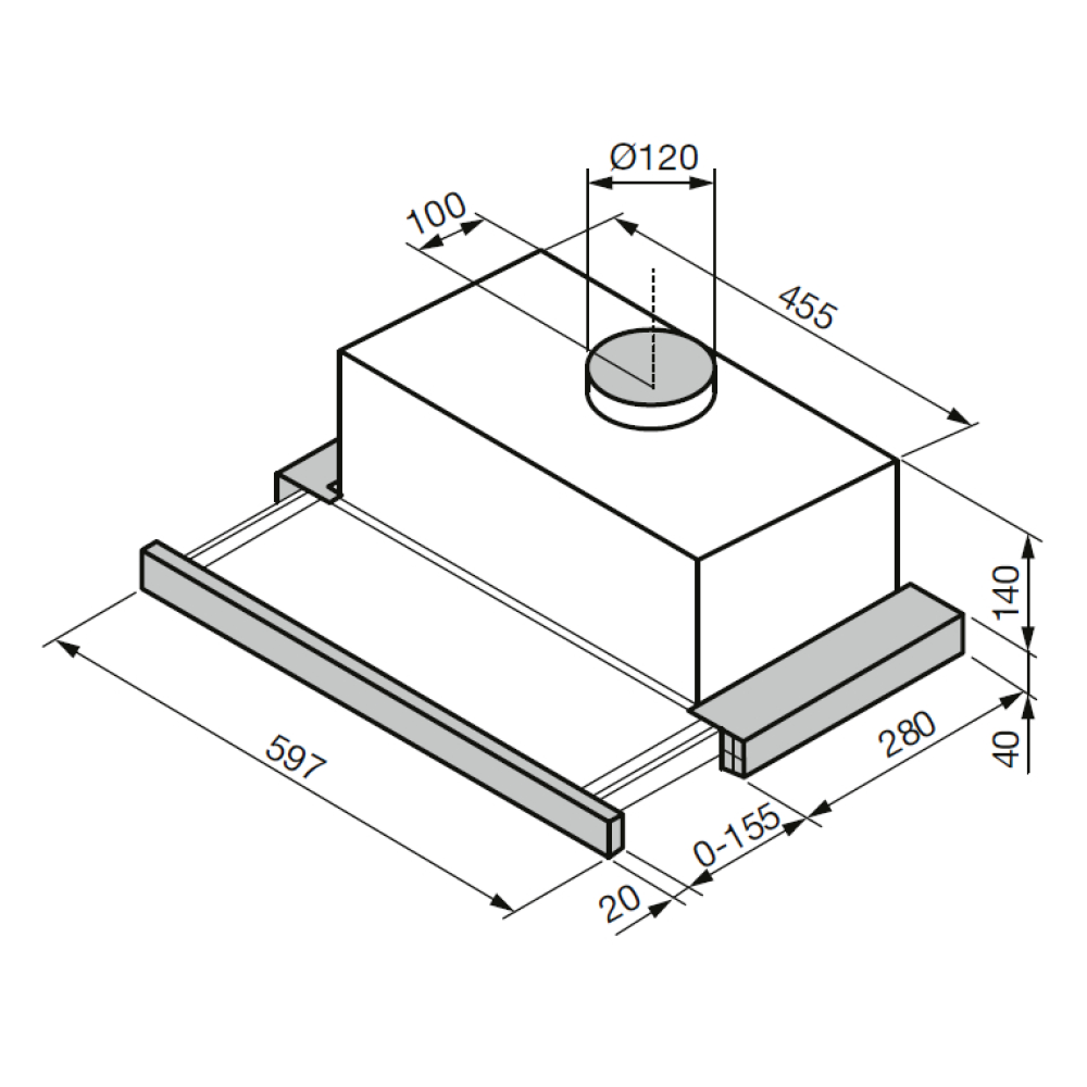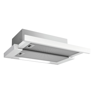 Eingebaute Dunstabzugshauben – die Kochfläche befindet sich unter dem Schrank, der die Dunstabzugshaube verbirgt, so dass sie das Küchendesign nicht beeinträchtigt.