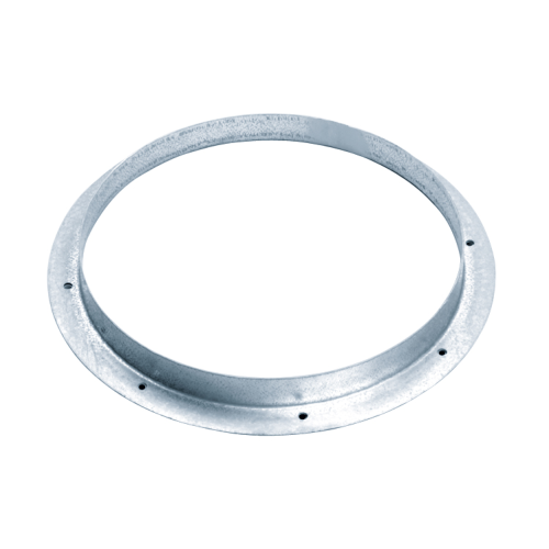 ist aus Stahlblech geschweißt, mit Flanschen zum Anschluss von Rundrohren, beschichtet mit schwarzem Polyesterlack. Die Halterungen und Bolzen sind galvanisch beschichtet.