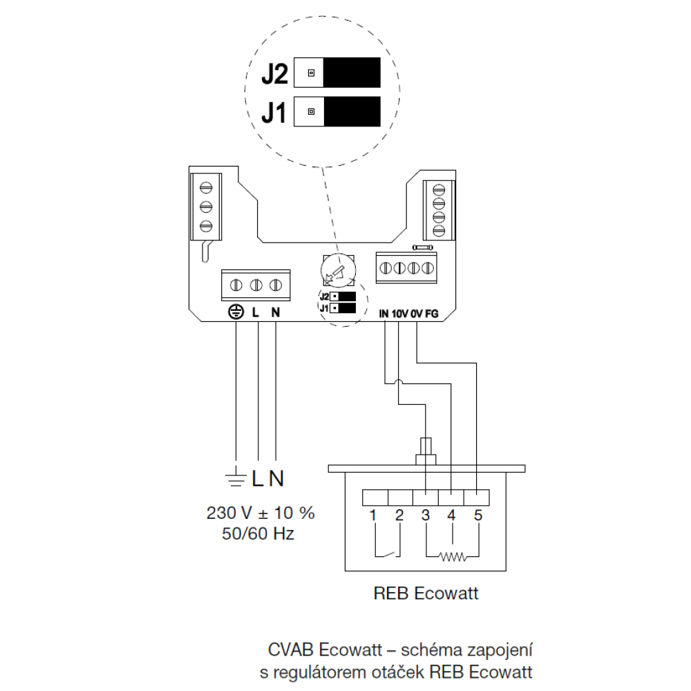 is performed by means of a potentiometer located in the terminal block or by an external REB Ecowatt control. In addition, an analogue 0-10 V control signal from a temperature, humidity