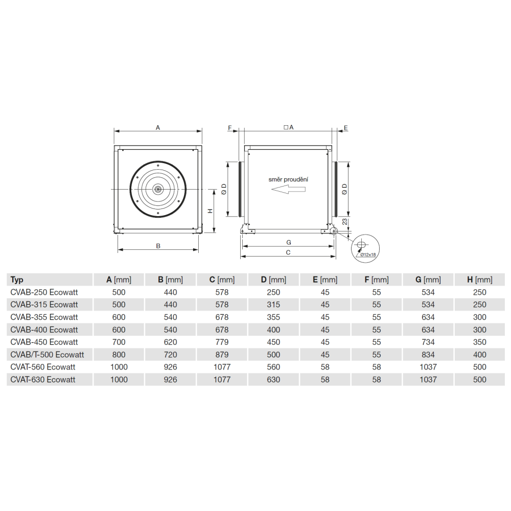 EC motor with thermal overload protection. Operating temperature -20 to +40 ºC. CVAB fan motors are 1-phase for 230 V, CVAT are 3-phase for 400 V. Protection rating IP44 (CVAB) or IP54 (CVAT).