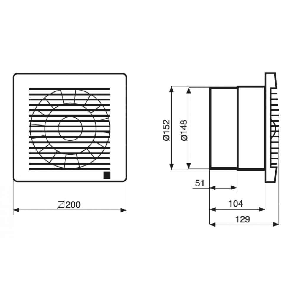 horizontally and vertically without restrictions. Fixing with four screws under the fan grille. Screws and dowels are included.