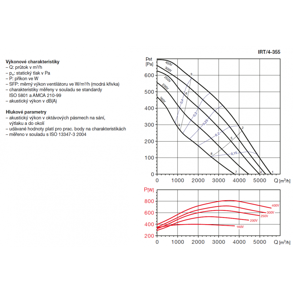 emitted by the fan is given in the tables for the four performance curves.