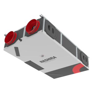 The counterflow plate heat exchanger is plastic with a ZZT efficiency of up to 94%. NASHIRA S E is equipped with a countercurrent enthalpy plate heat exchanger with ZZT efficiency up to 90% and ZZV efficiency up to 78%. The heat exchanger is accessible by removing the front wall of the unit. For summer operation, the unit is equipped with an exchanger bypass.