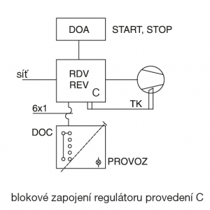 Speed controller with 5-stage output switching via contactors - controlled by remote communication switch DO C or DO A (start/stop), or by signal from parent digital system.