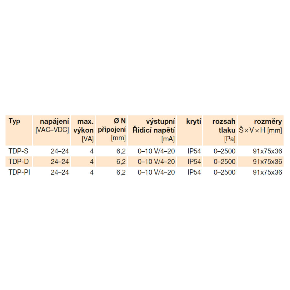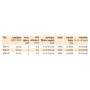 - TDP-S differential pressure sensor, which is suitable e.g. for indicating clogging of air filters etc.