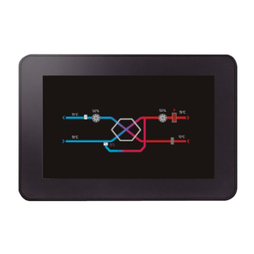 Jednotka je osazena integrovaným regulátorem ADVANCED s dotykovým ovladačem ETD. Ovladač je nutné objednat zvlášť, není součástí dodávky jednotky. Regulátor umožňuje manuální a automatické nastavení průtoku vzduchu, automatické řízení obtoku pro volné chlazení a zajištění protimrazové ochrany výměníku, regulaci výkonu předehřevu a dohřevu, indikaci alarmů a Modbus komunikaci. Jedním ovladačem ETD je možno ovládat až 5 jednotek (ovladač není součástí dodávky jednotky).