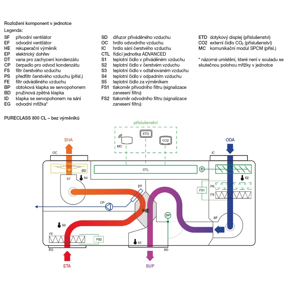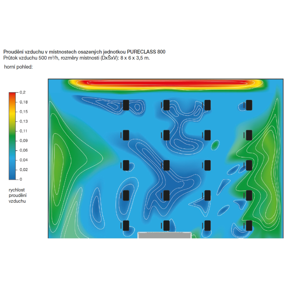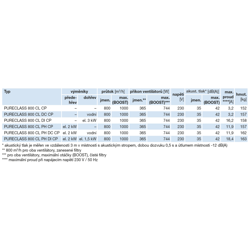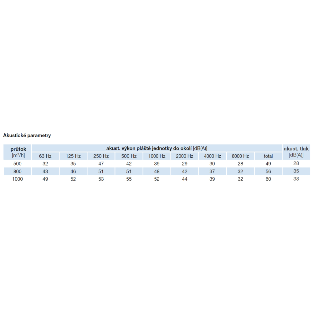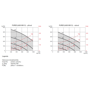 Doporučujeme instalaci jednotky PURECLASS 800 s příslušenstvím MPM 315 v kombinaci s fasádními mřížkami EDF-VUZS na straně ODA a EDF-VUZV EHA. V případě použití delšího potrubního rozvodu na straně ODA a EHA doporučujeme maximální tlakovou ztrátu jednotlivých potrubních rozvodů na straně EHA nebo ODA do max. 50 Pa včetně nasávacích a výstupních fasádních mřížek. Při použití potrubních rozvodů na straně ODA/EHA s vyšší tlakovou ztrátou než 50 Pa je nutné počítat se zvýšením hladiny akustického výkonu (resp. tlaku) jednotky PURECLASS, oproti hodnotám uvedeným v tabulkách níže, o 3 až 5 dB(A) v závislosti na tlakové ztrátě potrubního rozvodu ODA/EHA.