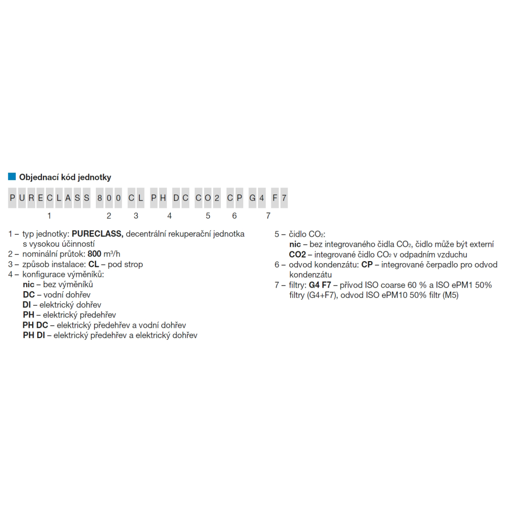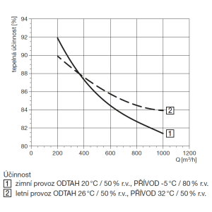ISO coarse 60 % a ISO ePM1 50 % (filtry G4+F7) na straně přiváděného vzduchu. ISO ePM10 50 % filtr (M5) na straně odváděného vzduchu.
