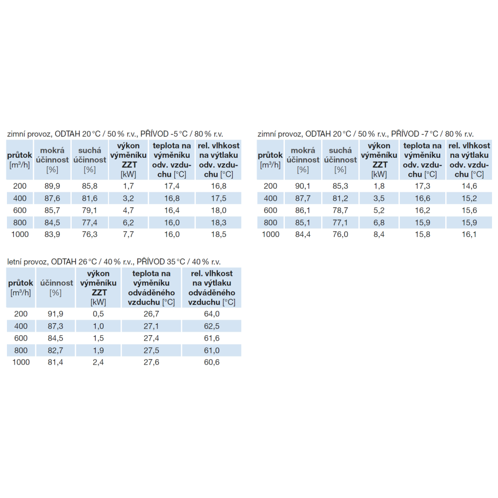 Deskový hliníkový protiproudý výměník s vysokou účinností až 92 %. Integrovaný obtok výměníku je umístěn na přívodní straně, v případě potřeby se aktivuje automaticky nebo ručně. Obtok se používá pro volné chlazení v případě, že je vnitřní teplota vyšší než venkovní.