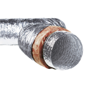 Ohebná Al laminátová hadice s kostrou z ocelového drátu spirálovitě vinutou mezi dvěma vrstvami několikavrstvého Al laminátu s tepelnou a hlukovou izolací.